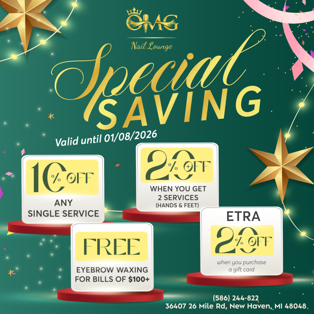Design Express your creativity with our nail design options, adding personalized flair to your manicure or pedicure. | $5.00 & Up | $5.15 & Up |